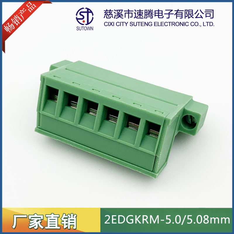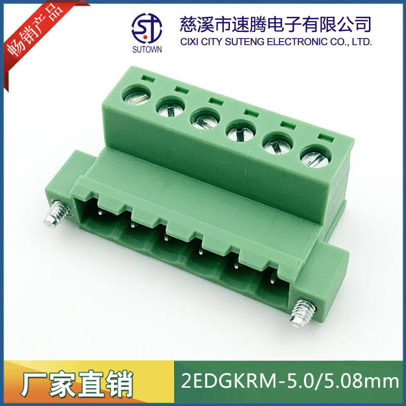 材質及規格處理間距:5.08mm塑件:PA66 UL94V-0觸點材料:磷青銅,鍍鎳螺絲:鋼,M2.5.鍍鎳機械性能額定電壓:300V額定電流:15A使用溫度:-40℃~+105℃瞬時溫度:+250℃,5s耐電壓:AC2000V/1Min接觸電阻:20mΩ絕緣電阻:5000MΩ/1000V使用線徑:28-12AWG 2.5mm2扭矩:0.4Nm剝線長度:7-8mm